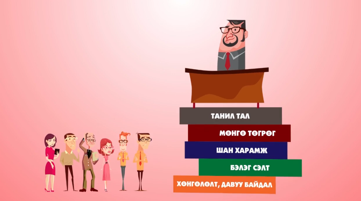 Авлигатай нийгмийг өөрчлөхийн тулд, Ашиг сонирхлын зөрчлийг таслан зогсоохын тулд, Ил тод байдлыг хангуулахын тулд, Хариуцлага, ёс зүйг сайжруулахын тулд Авлигыг илчилж #ШүгэлҮлээцгээе!